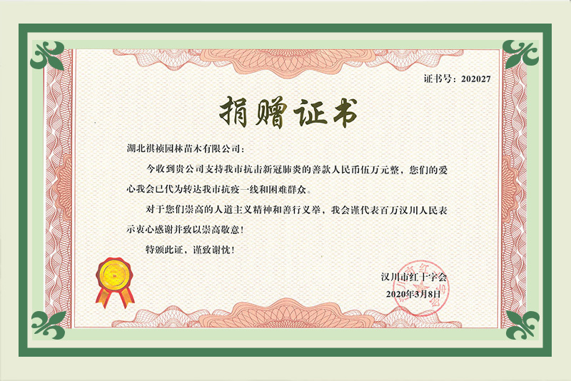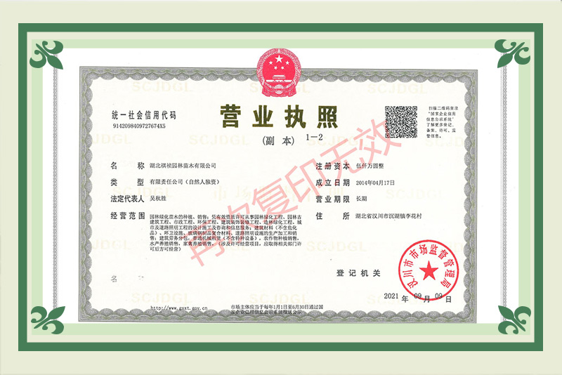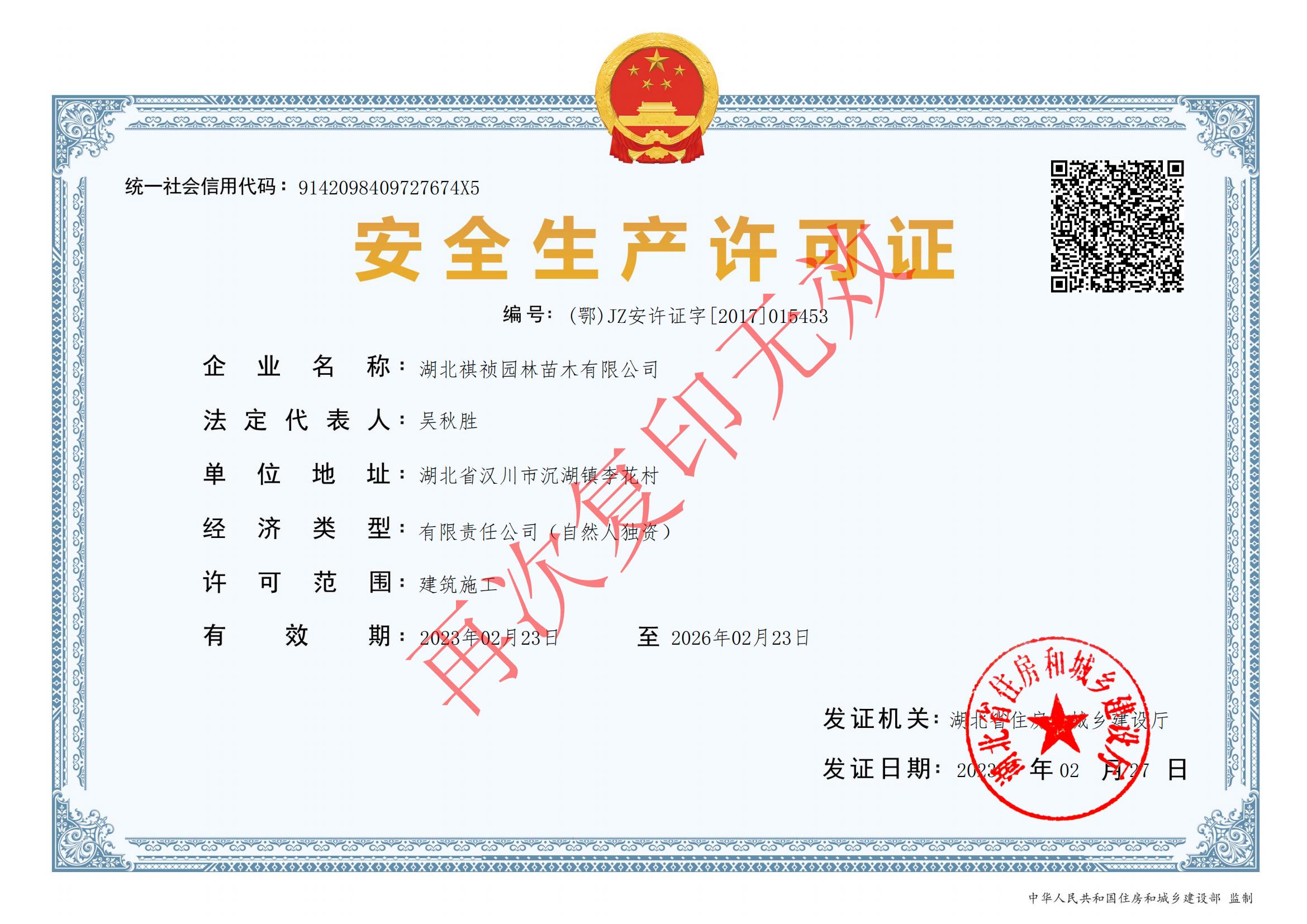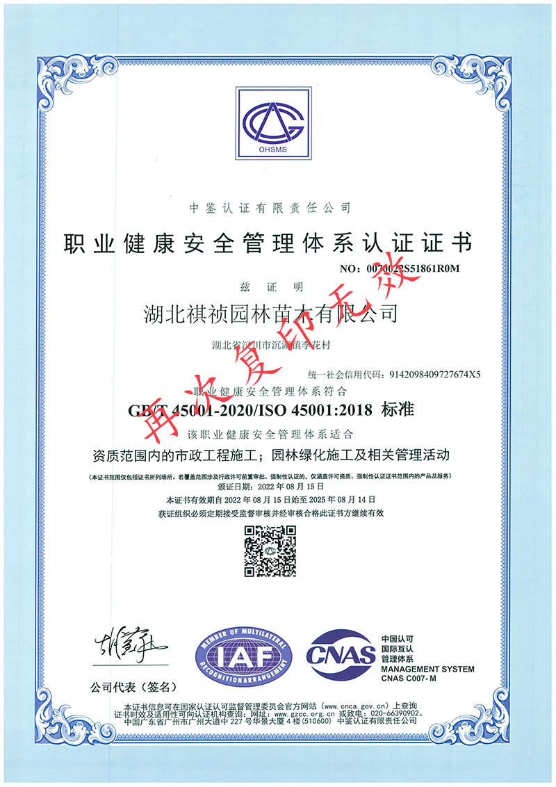 湖北祺禎園林苗木有限公司是一家專(zhuān)門(mén)致力于發(fā)展現(xiàn)代林業(yè)、苗圃花卉、旅游觀(guān)光、休閑娛樂(lè)、園林市政環(huán)保工程建設(shè)于一體的湖北省林業(yè)產(chǎn)業(yè)化省級(jí)龍頭企業(yè),公司具備城市園林綠化、建筑工程施工總承包、市政公用工程施工總承包、機(jī)電工程施工總承包、城市及道路照明工程專(zhuān)業(yè)承包、環(huán)保工程專(zhuān)業(yè)承包、施工勞務(wù)資質(zhì)不分等級(jí)等多項(xiàng)建筑業(yè)企業(yè)資質(zhì),先后獲得湖北省林業(yè)產(chǎn)業(yè)化省級(jí)重點(diǎn)龍頭企業(yè)、AAA級(jí)信用等級(jí)企業(yè)、孝感市“守合同重信用榮譽(yù)證書(shū)”、“五一勞動(dòng)獎(jiǎng)”等榮譽(yù)及質(zhì)量管理、環(huán)境管理、職業(yè)健康安全管理三大體系認(rèn)證。